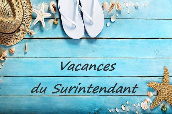 Veuillez prendre note que le surintendant Marc Meunier sera en vacances du 14 novembre au 21 novembre inclusivement.